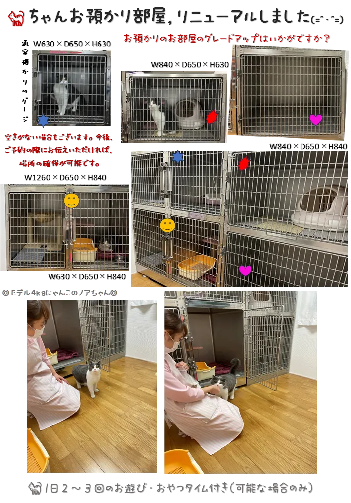 ★ねこさんの飼い主様へ★ 猫ちゃんお預かり部屋、リニューアルしました。日当たりもよく、静かな落ち着いお部屋に変わりました。ぜひご利用ください(=^・^=) 🐈1日2~3回のお遊び・おやつタイム付き(追加費用はかかりません。可能な場合のみ)